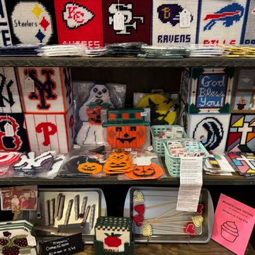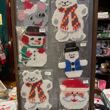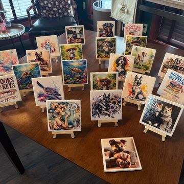 Sandra adds such a cozy touch to our shop with her “Blind Date with a Book” displays and her handmade scarves and hats. Her newest creations — themed coasters — are the perfect addition to her lineup of heartfelt, handcrafted goodies!