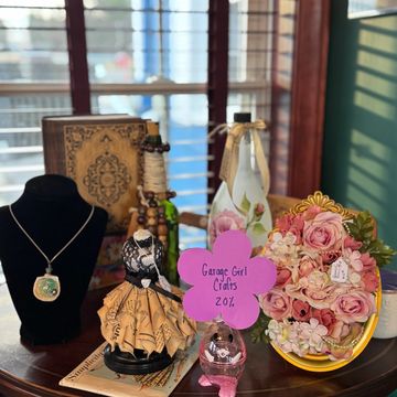 "I learned young how to garden, care for animals, cook, preserve food, sew, and craft. It wasn't called crafting back then; it was just a way of life. I retired in 2022 and began my home-based crafting business with a focus on 'Upcycling'. I use many items that people often throw away. In 2024, I stopped y to visit this very quaint and unique shop called Crafty Beans Co. and met Dominique and her loving family. I was invited to join this warm and artistic group of folks and couldn't be happier."