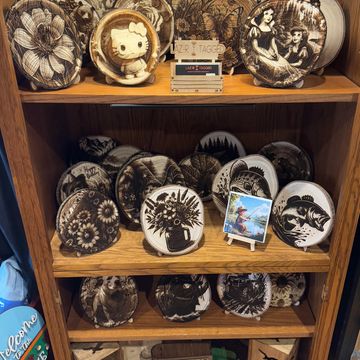 Jennifer creates beautiful stained-glass ornaments inspired by birds, flowers, and more. She also crafts charming needle-felted animal ornaments and hand-painted wooden pieces. Her latest addition includes custom-made magnets, which can be personalized for each customer.